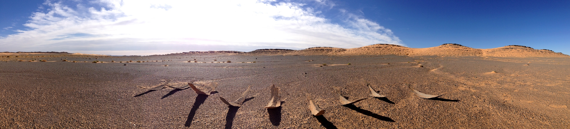 The landscape in the Southeast region of Morocco is rough and deserted. In this sea of time and space, human existence is reduced to a tiny spec. During my stay in this environment, I was fascinated by the overpowering uniformity of the landscape; the only break in the endless repetition of rocks and sand was the shifting intensity and hue of the light. It is hard to imagine that millions of years ago this landscape was covered by water, of which the rocks with thousands of belemnites are the silent proof.